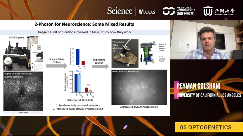 World-renowned researchers Dr. Peyman Golshani (UCLA), Dr. Christina Kim (UC Davis) and Dr. Mingqi Xie (Westlake University) presented their published and ongoing work in different aspects of optogenetics, ranging from the development of new optogenetic methods for cell manipulation to coupling of optogenetic approaches with cell activity recording and gene expression profiling. The symposium, including the panel discussion, was co-chaired by Dr. Xiaobo Li (Westlake University) and by Dr. Mattia Maroso (Science/AAAS).
